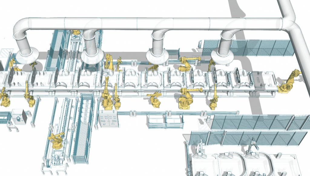 • 利用參數(shù)化設(shè)計軟件,滿足單機(jī)器人工作站設(shè)計和機(jī)器人產(chǎn)線設(shè)計。
